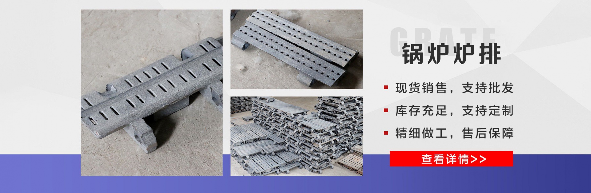 麗新機(jī)械配件廠位于“江北水城”之稱的聊城。公司主要銷售:鍋爐爐門,爐篦子,爐排片,鍋爐爐排,省煤器管,鍋爐風(fēng)帽,鍋爐配件等多種產(chǎn)品,公司堅(jiān)持以市場(chǎng)為導(dǎo)向、以誠實(shí)守信為經(jīng)營(yíng)理念,竭誠為廣大客戶服務(wù)!  爐排是鍋爐或工業(yè)爐中堆置固體燃料并使之有效燃燒的部件。整個(gè)爐排主要包括框架和爐排片兩個(gè)部分。爐排片通常用鑄鐵制造,組裝后片與片之間保持必要的通風(fēng)縫隙,并且往往還在爐排下邊設(shè)置可以調(diào)節(jié)風(fēng)量的分隔的通風(fēng)室,以便空氣通過縫隙進(jìn)入燃料層燃燒。燒盡后的灰渣用人工或機(jī)械方法排出。爐排有固定式、移動(dòng)式、往復(fù)式、振動(dòng)式和下飼式等類型。  鍋爐爐排操作實(shí)現(xiàn)了機(jī)械化,減輕了司爐工的勞動(dòng)強(qiáng)度。快裝出廠,到使用現(xiàn)場(chǎng)后,裝接閥門儀表,鼓、引風(fēng)機(jī)、煙風(fēng)管道、省煤器、除塵器、出渣機(jī)。上煤機(jī)及水電路等即可運(yùn)行,且具有起動(dòng)生火快等特點(diǎn)。  公司憑借豐富的規(guī)格品種,過硬的質(zhì)量,合理的價(jià)格,完善的服務(wù),不斷地受到新老用戶及業(yè)內(nèi)人士的肯定和信任,我們本著及用戶之所及,想用戶之所想的服務(wù)宗旨不斷地拼搏,進(jìn)取,在此對(duì)多年來支持我們的各行各業(yè)的新老朋友表示由衷的感謝!  我公司的理念:“誠信、合作、互利、雙贏”!以最大的努力滿足客戶的需求。...
